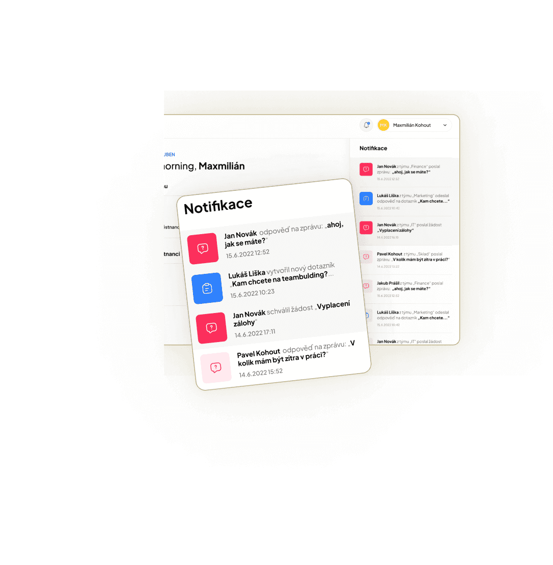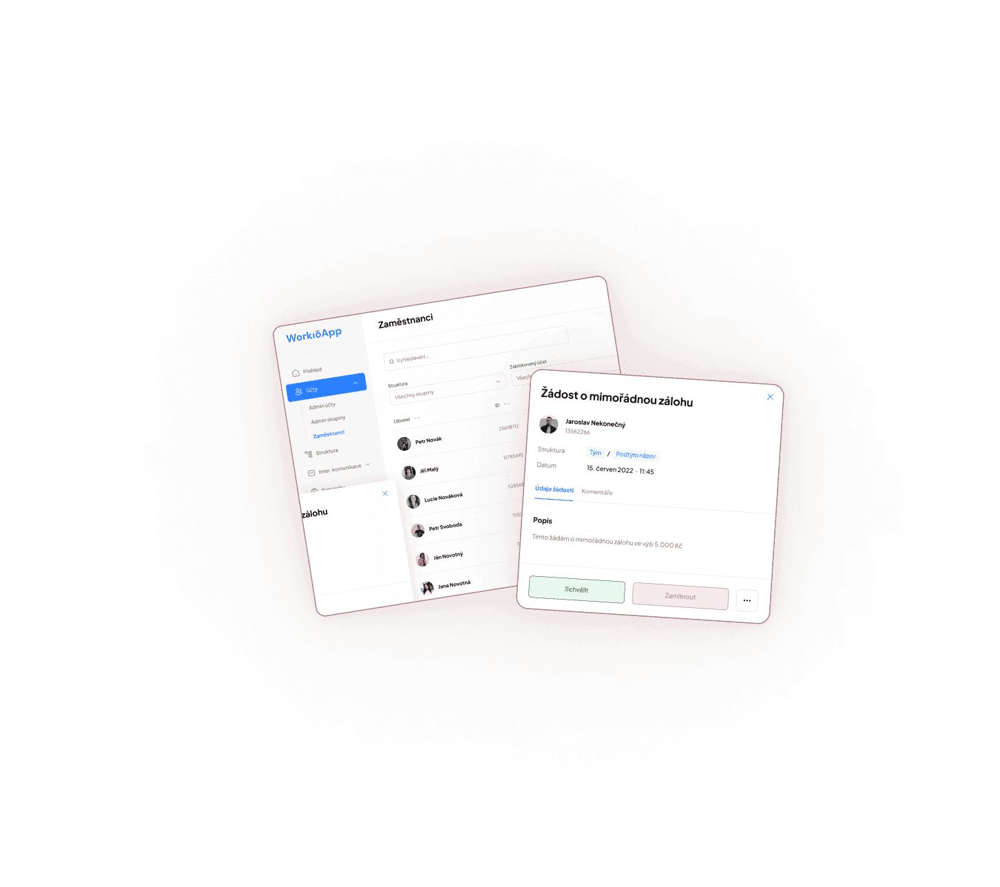 Evidence a schvalování žádostí o dovolené, homeoffice nebo schůzku s vedoucím. Zaměstnanci mohou vše provádět v přehledné mobilní aplikaci.